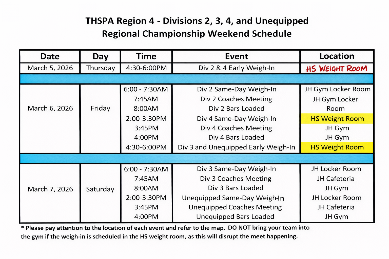 T.H.S.P.A. does not condone the practice of a lifter losing and/or gaining excess amounts of body weight. Lifter well-being and safety should be at the forefront when determining in which weight class a lifter will compete.